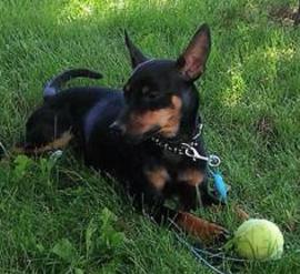 Things are going very well. What a wonderful little guy. We decided to call him Woody. He seems to respond very well to that and it fits him. We just love this little guy to death. He loves sleeping with us and has already had an adventure with a bone we got him. He went through about 25 different hiding spots with the bone. It was comical. He finally decided he would eat it after an entire day of hide and seek. You were correct that he loves playing fetch! He is so good at it too. This is a picture of him sitting with his tennis ball after we got done playing. We are already so attached to this little guy. We have no intention of giving up on him. He is already part of our family.