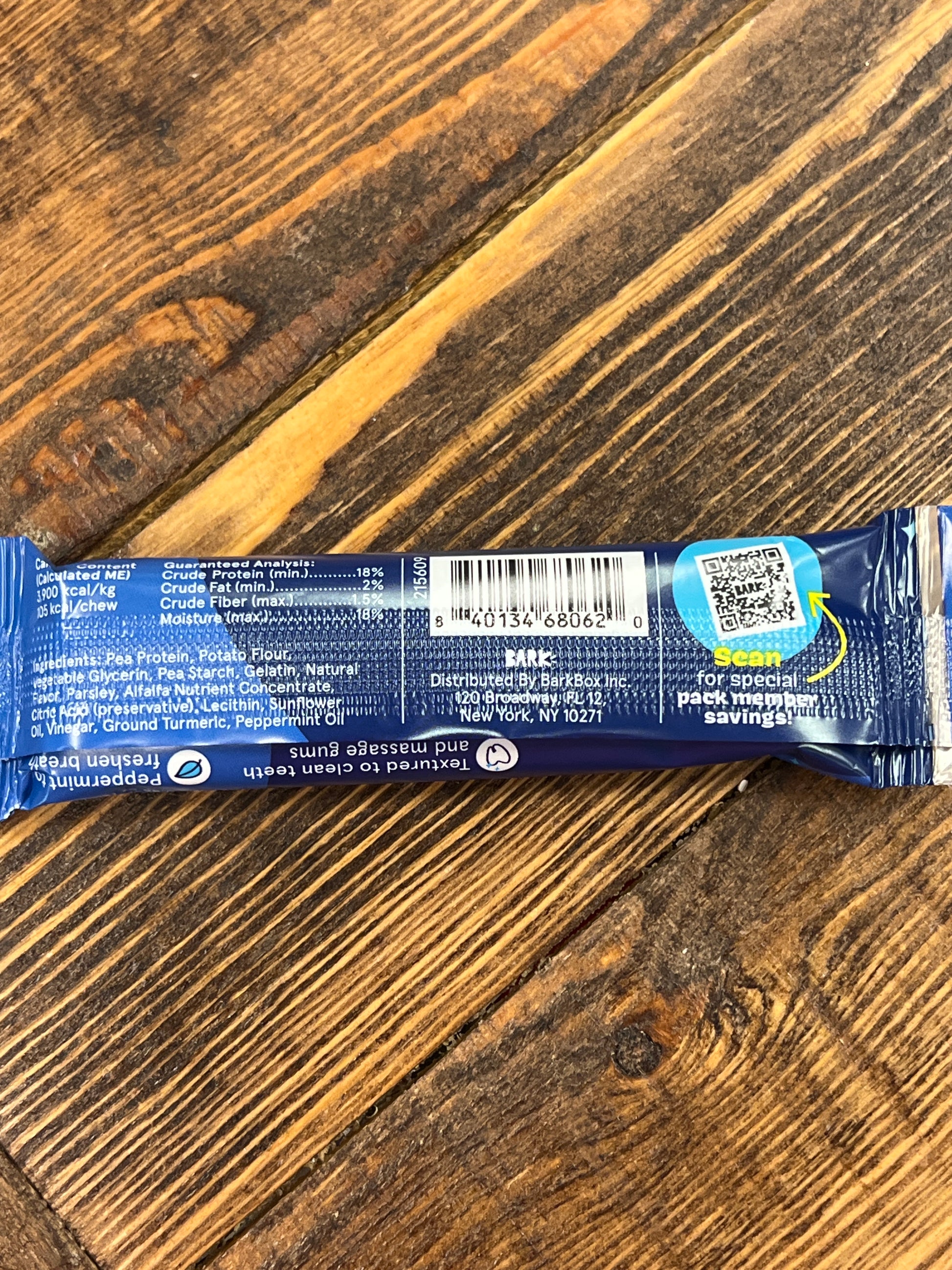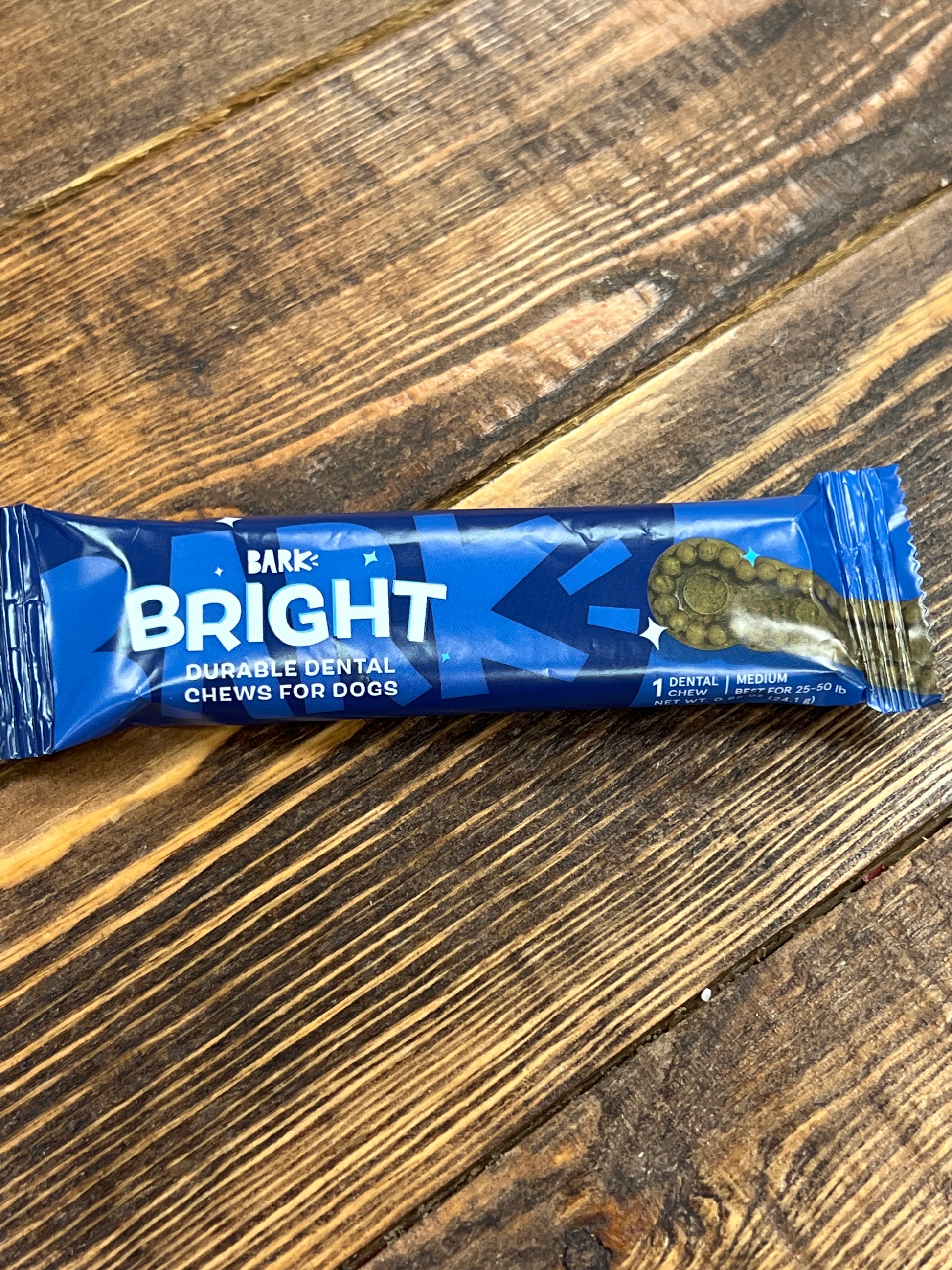 Keep your dog's teeth and breath fresh with Bark BRIGHT dental chews! Made for medium dogs weighing 25-50lbs, these durable chews have a textured surface that helps clean teeth while freshening their breath with the refreshing flavor of peppermint. Give your dog something to smile about!