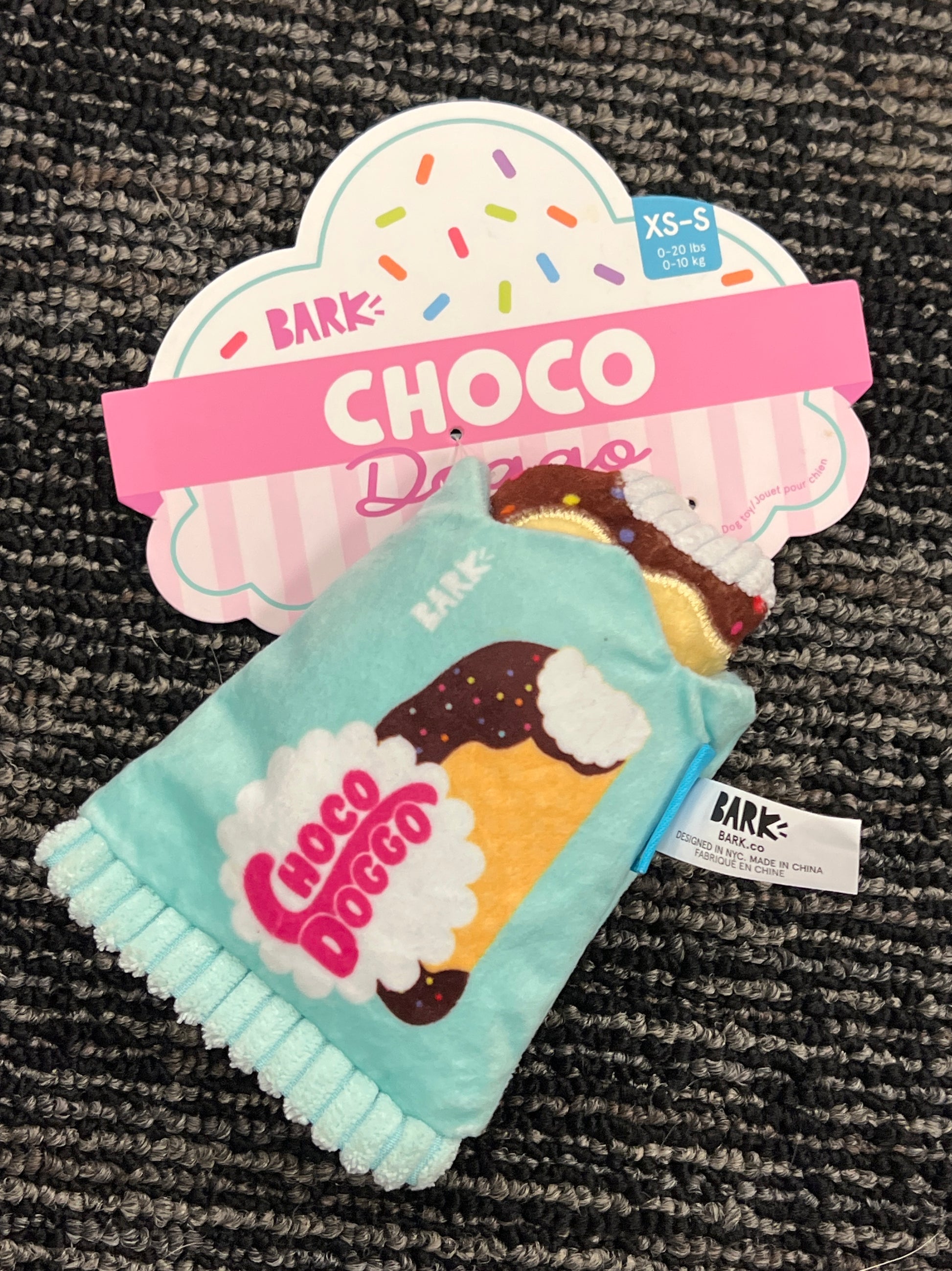 Get ready for some "ruff" and tumble playtime with the Bark Choco Doggo toy! Designed for xs-s dogs up to 20lbs, this multi-part toy features a squeaker and crazy crinkle to keep your furry friend entertained. Made with durable, multi-textured fabric for long-lasting fun. Woof yeah!