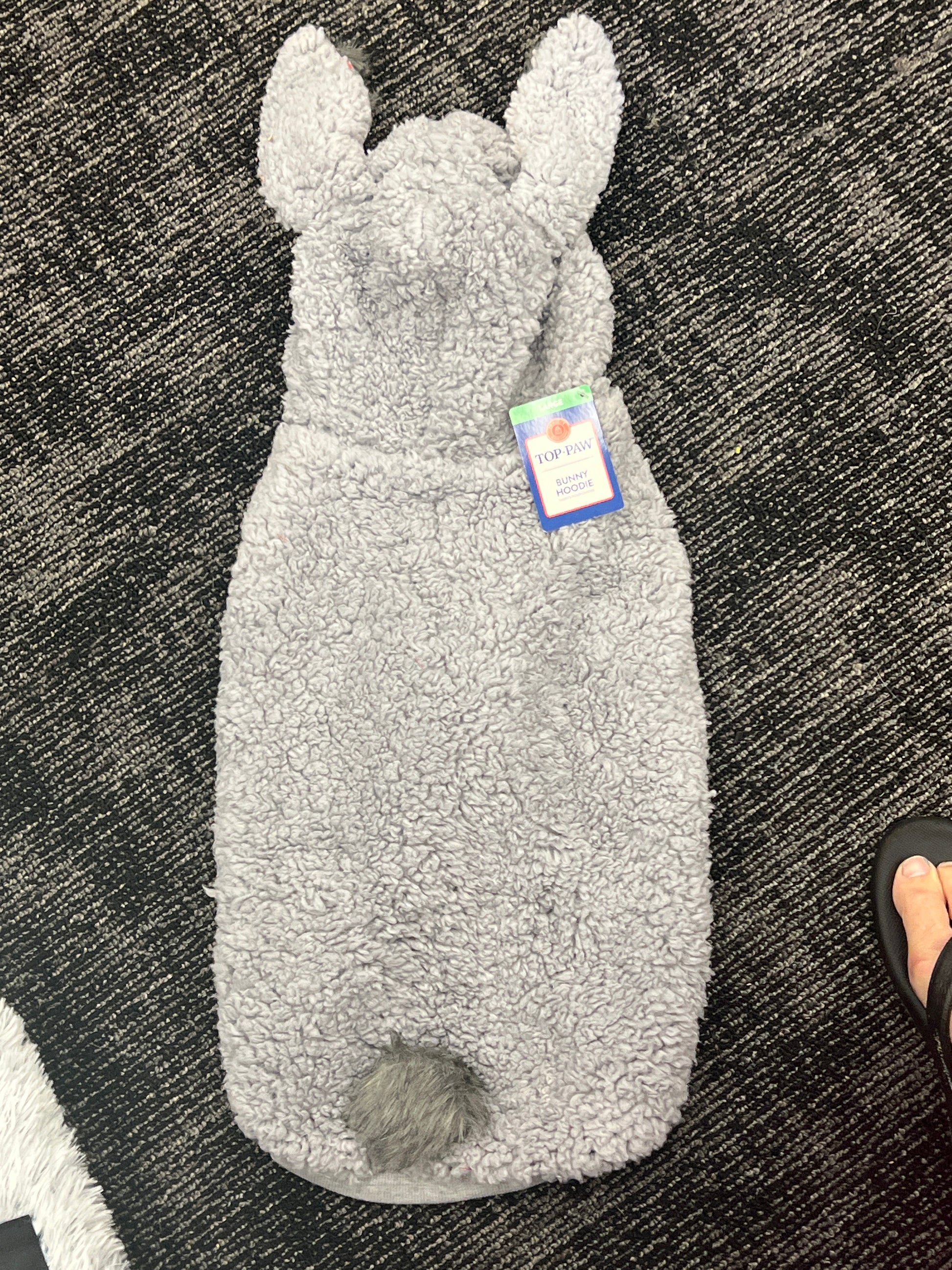 Pet Costume fluffy plush grey bunny hoodie size Large